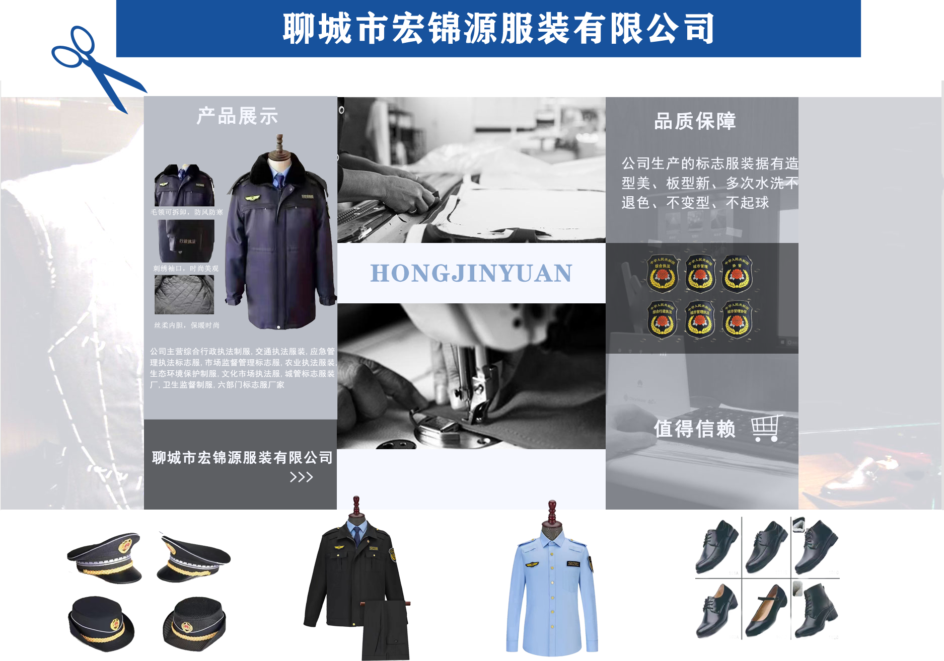 聊城市宏錦源服裝有限公司位于江北水城—山東聊城,地理位置優(yōu)越,交通便利。公司主營綜合行政執(zhí)法制服,交通執(zhí)法服裝,應(yīng)急管理執(zhí)法標志服,市場監(jiān)督管理標志服,農(nóng)業(yè)執(zhí)法服裝,生態(tài)環(huán)境保護制服,文化市場執(zhí)法服,城管標志服裝廠,衛(wèi)生監(jiān)督制服,六部門標志服廠家等,值得信賴! 公司生產(chǎn)的標志服裝據(jù)有造型美、板型新、多次水洗不退色、不變型、不起泡?! 罢J真辦事,踏實做人”是宏錦源的企業(yè)精神,我們的宗旨是:“用服務(wù)與真誠來換取你的信任與支持,互惠互利,共創(chuàng)雙贏!”我公司愿與國內(nèi)外各界同仁志士竭誠合作,共創(chuàng)未來企業(yè)目標:在已選定的服飾領(lǐng)域中,成為行業(yè)的卓越者。 經(jīng)營理念:追求產(chǎn)品卓越,為用戶提供完美、高效的服務(wù)。...